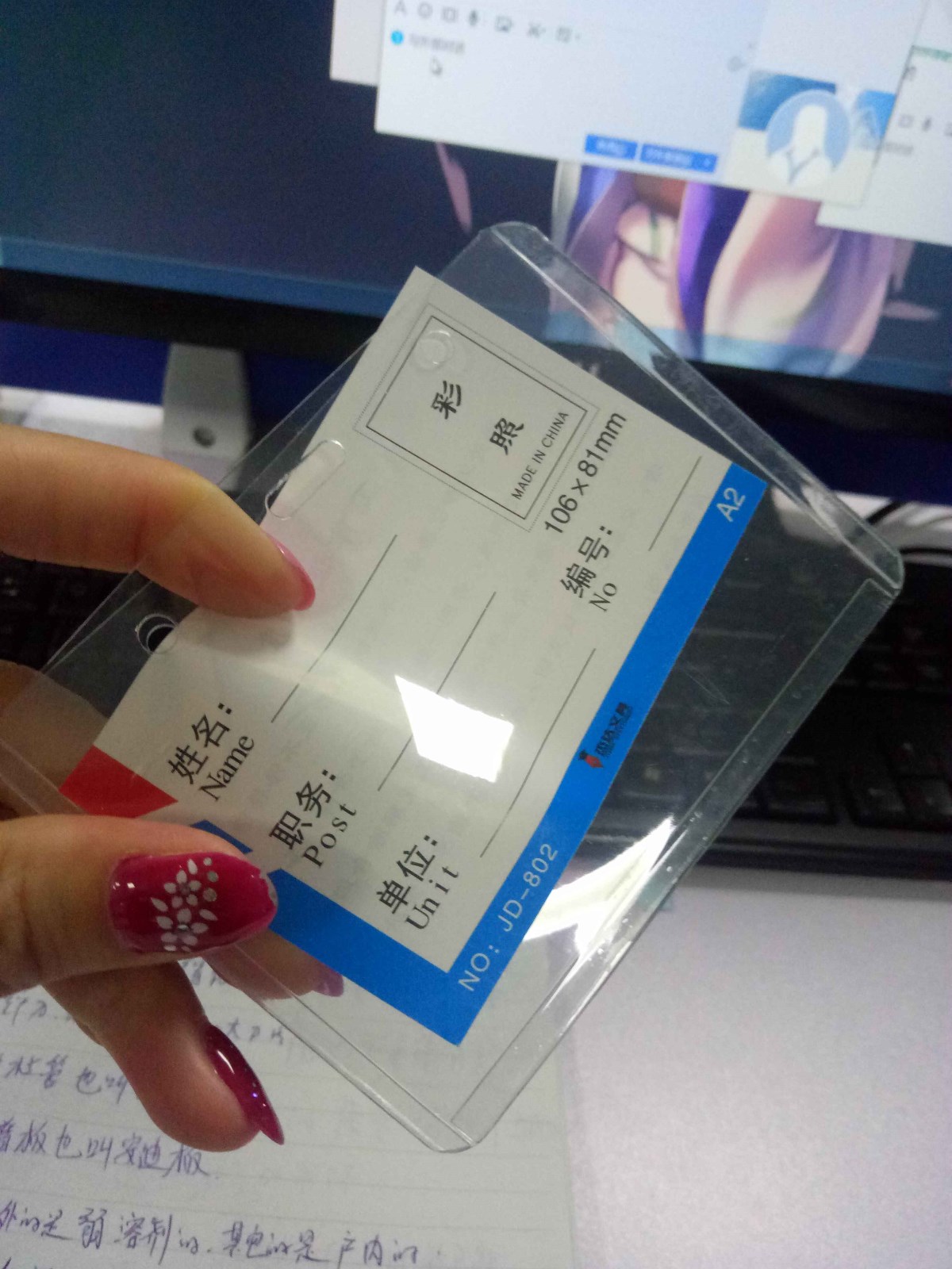 硬胶证卡胸牌A7竖式81mm*115mm(内径68mm*104mm)